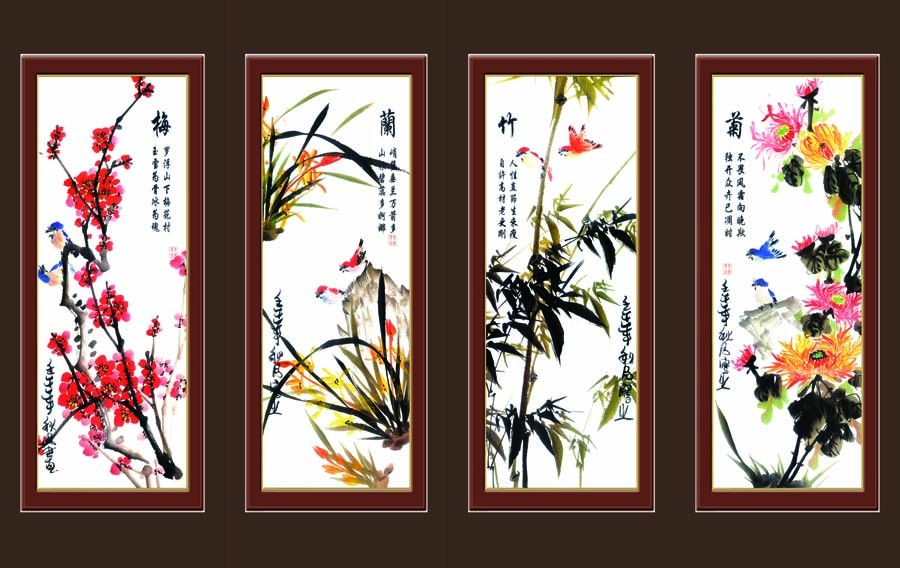 TRANH CANVAS  TỨ QUÝ ĐÀO LAN TRÚC CÚC 38