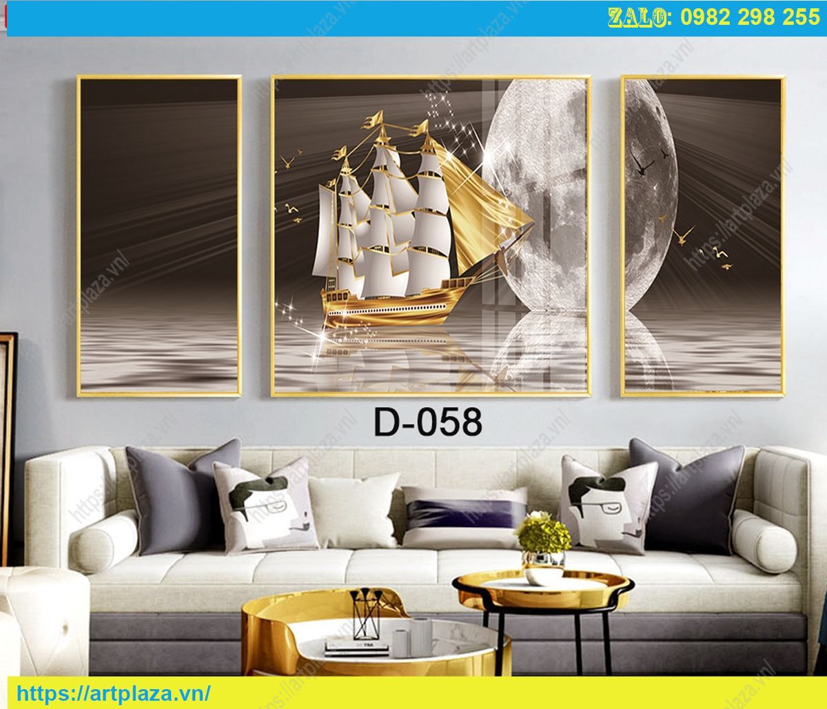 Tranh tráng gương bộ 3 hiện đại 058 là một trong những mẫu tranh thuận buồm xuôi gió đẹp