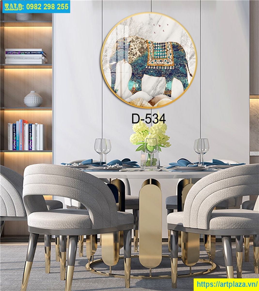 Tranh tráng gương tròn 534 là một trong những mẫu tranh con Voi đẹp