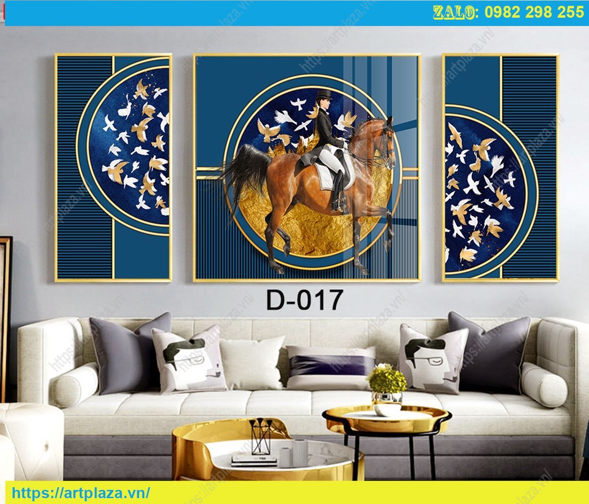 Tranh tráng gương bộ 3 hiện đại 017 là một trong những mẫu tranh mã đáo đẹp