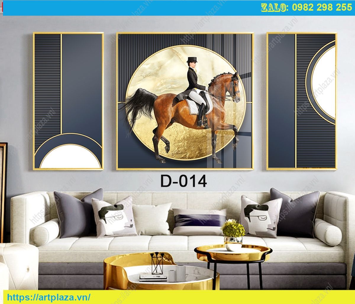 Tranh tráng gương bộ 3 hiện đại 014 là một trong những mẫu tranh mã đáo đẹp