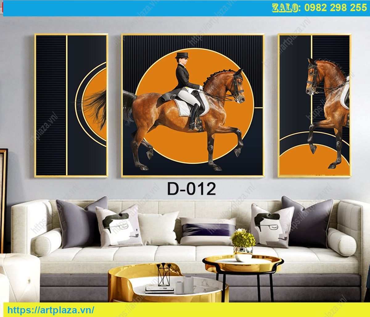 Tranh tráng gương bộ 3 hiện đại 012 là một trong những mẫu tranh mã đáo đẹp