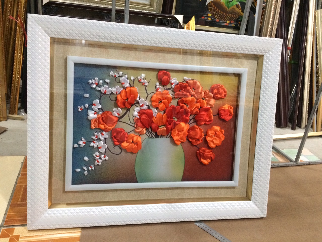 TRANH THÊU RUY BĂNG: BÌNH HOA POPPY