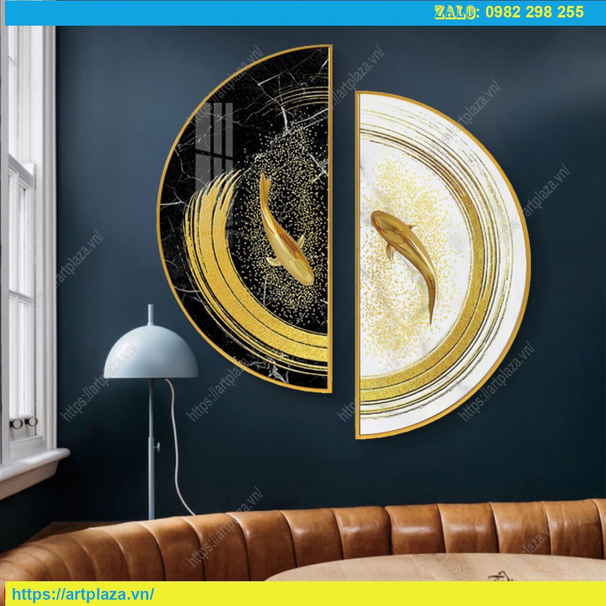Tranh tráng gương tròn 400267 là một trong những mẫu tranh Cá đẹp