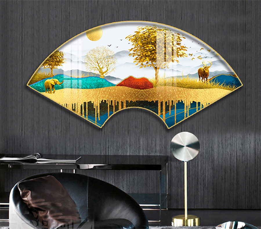 TAGtranh tráng gươngtranh tráng gương hình quạttranh treo tườngkhung tranhtranh hiện đạitranh canvas hình quạt