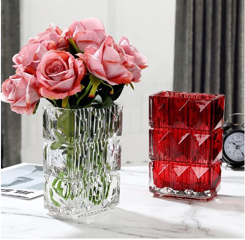 Lọ hoa thủy tinh Decor trang trí độc đáo 002 màu đỏ đô