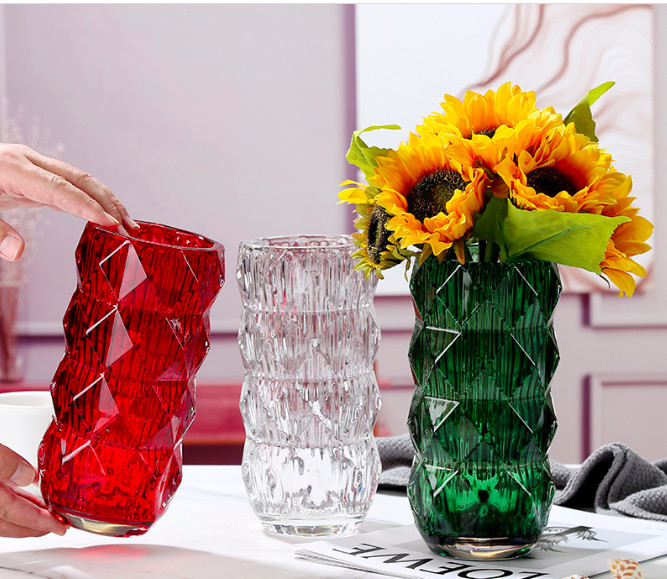 ► Kiểu dáng: lọ hoa hình trụ thuôn dài với họa tiết hình khối giống mặt viên kim cương lấp lánh