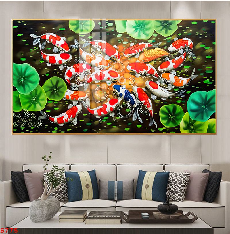 TRANH TRÁNG GƯƠNG PHONG THỦY CÁ CHÉP HOA SEN S775