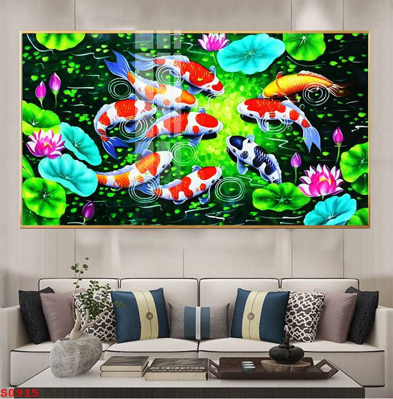 TRANH TRÁNG GƯƠNG PHONG THỦY CÁ CHÉP HOA SEN S0915
