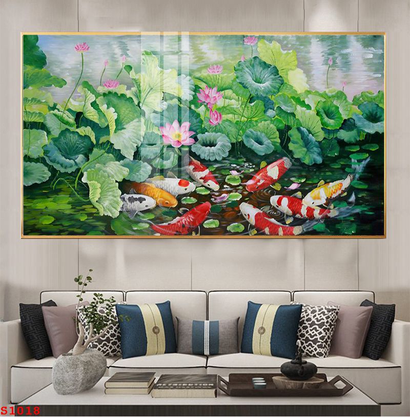 TRANH TRÁNG GƯƠNG PHONG THỦY CÁ CHÉP HOA SEN S1018