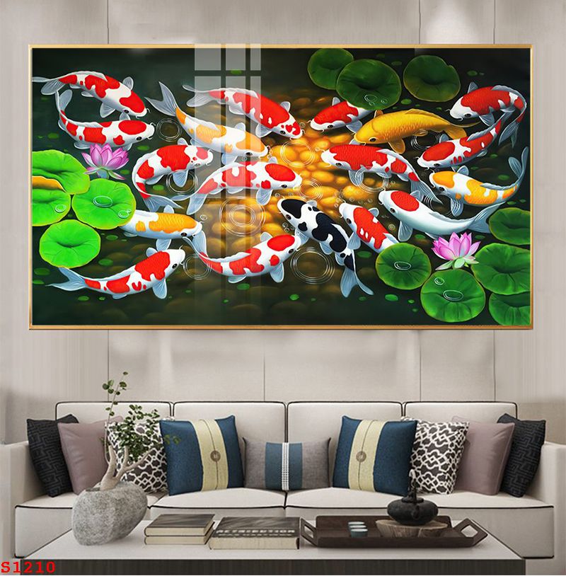 TRANH TRÁNG GƯƠNG PHONG THỦY CÁ CHÉP HOA SEN S1210