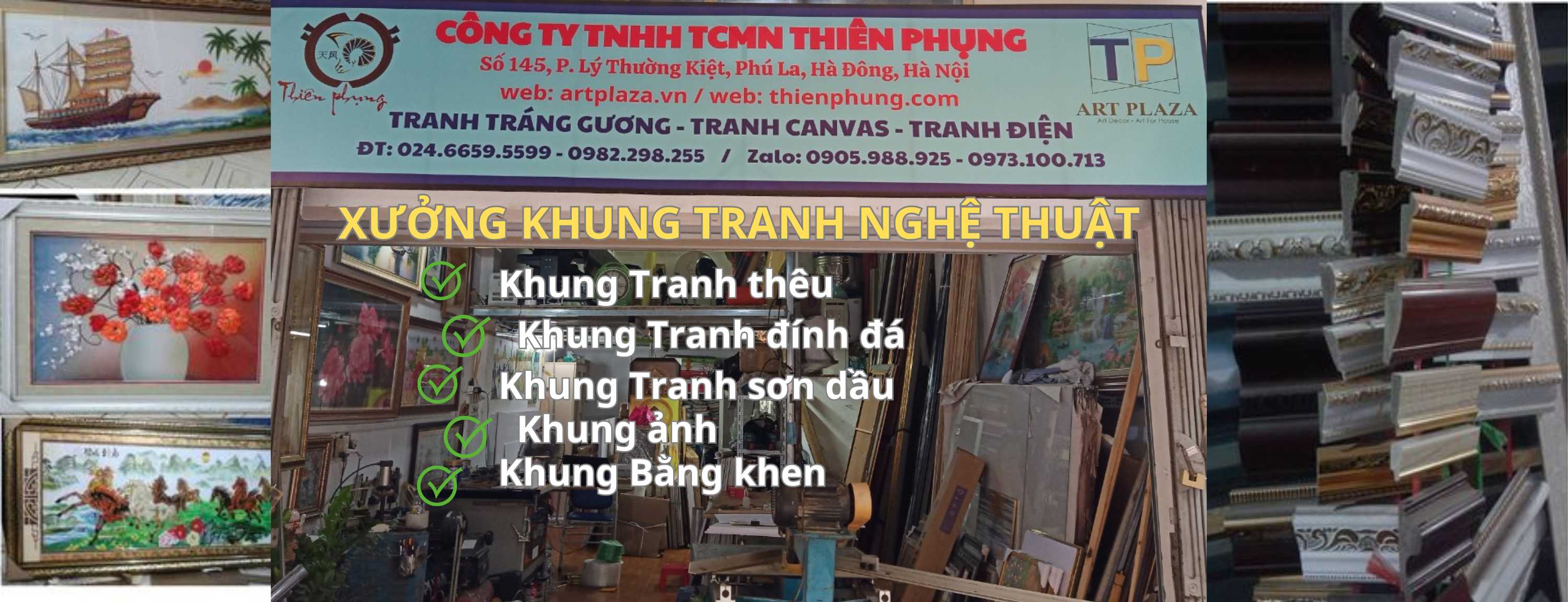 Xưởng khung THIÊN PHỤNG với trên 12 năm kinh nghiệm trong lĩnh vực đóng khung tranh, khung bằng khen uy tín chất lượng tại Hà Đông, Hà Nội. Chúng tôi cung cấp bán buôn, bán lẻ khung tranh, khung ảnh, khung hình, khung bằng khen, khung giấy khen, khung chứng nhận, khung chứng chỉ giá tốt, dịch vụ tốt.